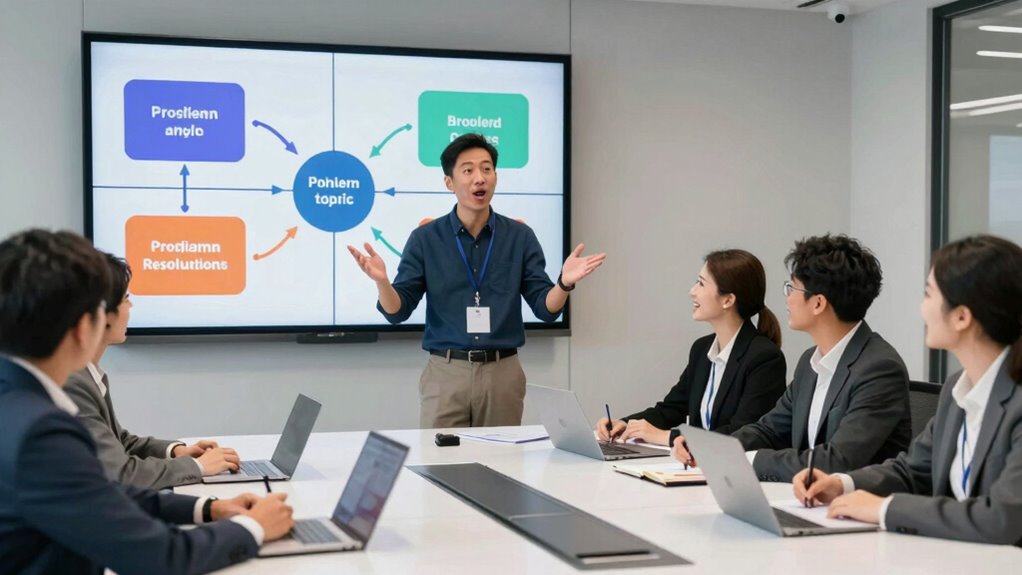 How can you guarantee your communication script effectively guides guests toward resolution? The key is using a structured problem-solving approach that aligns with guest expectations and maintains a positive communication tone. Start by clearly identifying the issue, then propose solutions, and confirm understanding. This process keeps the conversation focused and efficient. To deepen your understanding, consider this table: