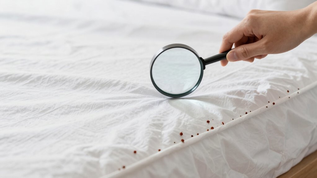 One common mistake that increases the stress of bed bug checks is rushing through the process without thorough inspection. When you overgeneralize symptoms, you might assume a problem exists without clear evidence, leading to unnecessary worry. Ignoring early signs, like tiny blood spots or shed skins, makes it harder to catch an infestation early, causing panic later. Skipping detailed checks in common hiding spots, such as mattress seams and furniture crevices, only prolongs uncertainty. This hurried approach can make you feel overwhelmed and paranoid. Instead, take your time and focus on specific signs of bed bugs. Recognizing early indicators and avoiding assumptions helps you stay calm and ensures you catch the problem before it becomes unmanageable.