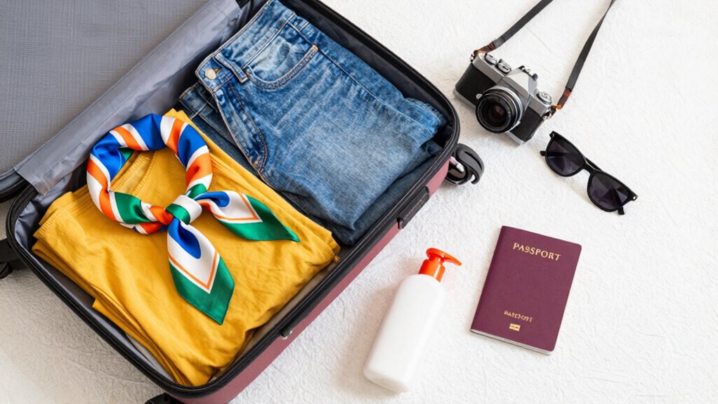 They say “a place for everything, and everything in its place,” and packing apps make that a reality. Use packing apps with checklist templates to streamline your flat lay. These tools help you quickly verify essential items, ensuring nothing’s missed. They’re perfect for catching missing items in seconds and customizing lists for different trips. Embrace technology to make packing smarter, faster, and more organized—your trip will thank you.