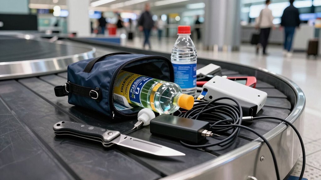 Many items commonly confiscated at security checkpoints can be easily replaced with safer alternatives that won’t cause delays or inconvenience. For example, instead of carrying large bottles of liquids that exceed the 3.4-ounce limit, opt for travel-sized containers or purchase toiletries after passing through security. Sharp objects like scissors or pocket knives should be left at home or packed in checked luggage, aligning with airport regulations. Fireworks, aerosols, and flammable liquids are a no-go for safety reasons. To improve your travel safety and avoid confiscation, read up on airport regulations before packing. Being aware of security regulations helps you prepare appropriately and avoid surprises at checkpoints. Safer alternatives not only help you stay compliant but also save time and reduce stress at security checks. Being prepared ensures a smoother, hassle-free journey.