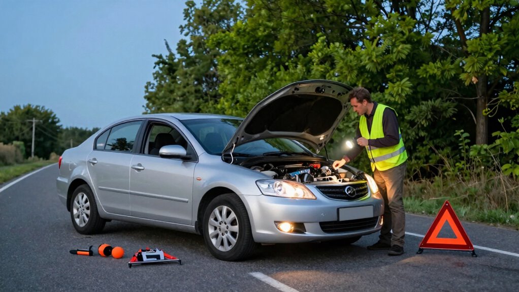 When your car breaks down unexpectedly, the first priority is to move safely away from traffic. Prioritize roadside safety by steering to the shoulder or a safe, flat area away from moving vehicles. Turn on your hazard lights immediately to alert other drivers and reduce the risk of accidents. Once stopped, stay inside your vehicle if it’s in a dangerous spot—exiting can expose you to oncoming traffic. If you must get out, do so cautiously and stand away from the road, preferably behind a barrier or out of traffic lanes. Protect yourself first by wearing reflective clothing if you have it, and always remain alert to your surroundings. Staying aware of your environment is essential to making responsible safety decisions. Your goal is to ensure personal protection while minimizing the risk of further accidents or injury. Remember that roadside safety measures are crucial to handle emergencies effectively. Being familiar with basic emergency procedures can help you respond more effectively in such situations.