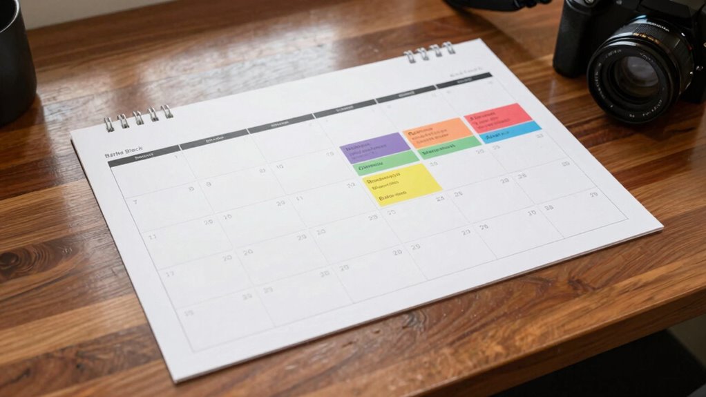 Have you ever wondered how professionals manage to keep their workflows smooth and efficient? It all comes down to smart time management and effective productivity strategies. One key tool they use is the buffer block—intentional gaps scheduled between tasks. These buffer blocks act as safety nets, absorbing unexpected delays or interruptions, so your overall schedule stays on track. They also support exploring new content formats, which can help diversify and enhance your work. Implementing time buffers can help prevent task spillovers that can lead to stress and missed deadlines. By allocating these small time buffers, you gain flexibility and control, ensuring you can handle unforeseen issues without disrupting your entire day. Recognizing the importance of visual clarity in project planning can further optimize your schedule and reduce stress. Using buffer blocks isn’t about wasting time; it’s a strategic move to maintain momentum and keep your productivity high. This simple technique makes your workday more manageable and less stressful.