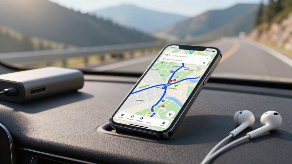Imagine your phone as a traveler on a long journey, conserving energy for the road ahead. Turning off Wi-Fi toggling and managing Bluetooth help cut down background activity, freeing up precious battery life during navigation. When you disable these features, your device focuses solely on GPS, making your navigation more efficient. This simple act ensures your phone stays alive longer, guiding you smoothly without the worry of sudden power loss.