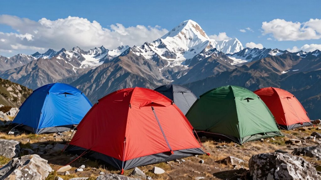 Think of accessories as the secret spices that turn a good dish into a gourmet feast. I add a footprint to protect the tent floor, making it last longer in rough terrains. A high-quality rainfly keeps me dry during sudden storms, while vent accessories improve airflow and reduce condensation. These extras boost my tent’s performance, ensuring I stay comfortable and protected no matter the weather.