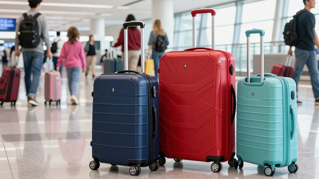 When it comes to family travel, ease of maneuverability can make a big difference in handling luggage comfortably and efficiently. I look for luggage with four multi-directional spinner wheels, so it glides smoothly in any direction, reducing effort. Lightweight construction is also key, making it easier to steer and control without straining. Telescoping handles with multiple height options help find the perfect ergonomic position, easing the strain during extended walks. Handles on top, side, and bottom allow quick lifting and repositioning, which saves time and effort. A well-balanced, compact design prevents tipping or wobbling, especially in crowded areas. Together, these features ensure that maneuvering through busy airports or narrow hallways feels effortless, making family travel less stressful and more enjoyable.