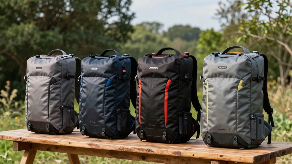 Back in the day, weather resistance was a bonus, but now, I look for backpacks that can withstand rain, snow, and dust. Some models are highly water-resistant with sealed zippers and tough outer fabrics, while others offer only basic protection. I always check for water-repellent materials and secure closures, ensuring my gear stays dry no matter the weather. So, I recommend choosing a backpack with a high IP rating for the best weather resistance.