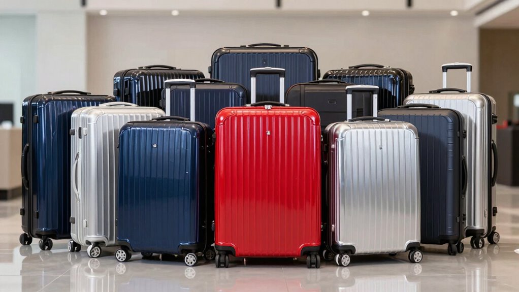 I recommend choosing suitcases made from polycarbonate or ballistic nylon for maximum durability. Polycarbonate is lightweight yet tough, resisting impacts and scratches, making it ideal for frequent travelers. Ballistic nylon offers exceptional resistance to wear and tear, ensuring your luggage stays intact over time. Both materials are reliable, durable, and can handle the rigors of travel. Consider these options to keep your luggage protected and lasting longer.