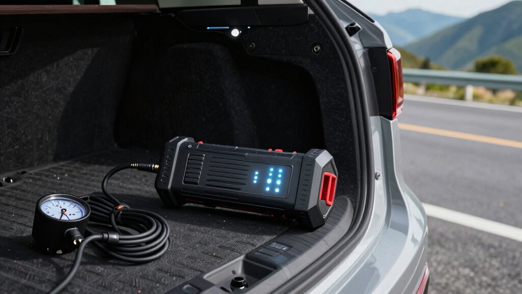 When selecting a jump starter with an air compressor for road trips, paying attention to additional features can make a significant difference in safety and convenience. Built-in LED lights, SOS signals, and emergency hammers boost visibility and safety during roadside emergencies. Multi-functionality, such as power banks, pressure gauges, and various inflation modes, helps reduce the need for extra devices. Safety protections like reverse polarity alarms, overcurrent safeguards, and automatic shut-off prevent accidents and damage. Extra accessories like nozzles, extension hoses, and repair tools enhance versatility for tire inflation and repairs. User-friendly features such as digital displays, auto shut-off, and multiple lighting modes improve ease of use in different conditions. These additional features ensure you’re prepared, safe, and efficient on your road trips.
