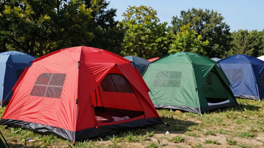 Setup speed and ease are crucial factors to contemplate because large pop-up camping tents are designed to simplify your packing and pitching process. These tents often set up in under 60 seconds thanks to pre-attached poles and seamless designs, making them incredibly user-friendly. The quick assembly reduces the need for extra tools, which is great for all experience levels. Foldable, compact storage features also make packing hassle-free, saving you time before and after your trip. Clear, simple instructions or automatic pop-up mechanisms are essential for hassle-free setup in various outdoor conditions. The minimal steps involved mean that even a single person can quickly and easily establish a large shelter, allowing you to focus more on enjoying your camping experience.
