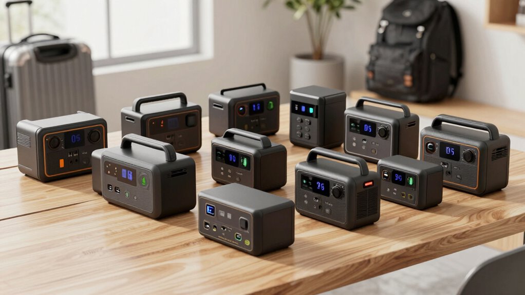 They’re lightweight enough to be a real feather in your cap, making travel a breeze. Most units weigh between 3 to 6 pounds, so you won’t feel like you’re lugging around a ton of bricks. I find that their compact size fits easily into carry-on bags or backpacks, helping me stay mobile without sacrificing power. Trust me, these units are designed for convenience, not weight, so you can focus on your trip instead of your gear.