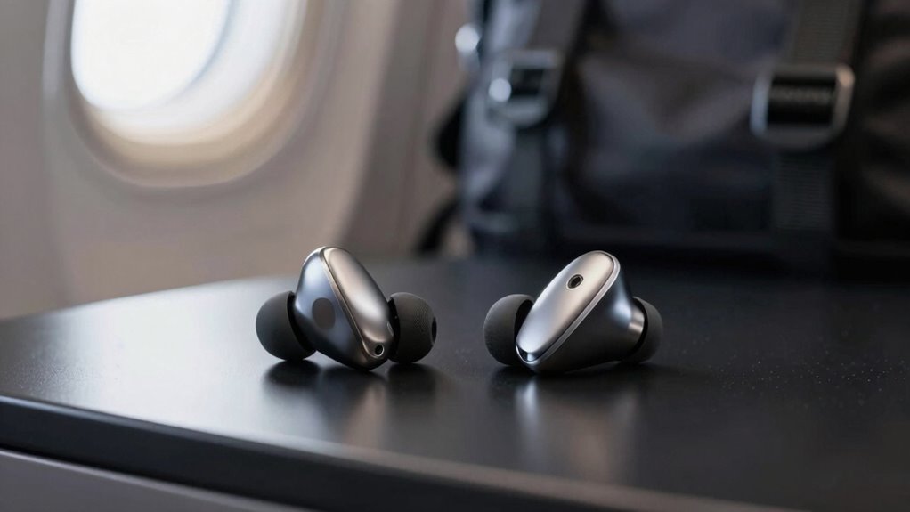 If you’re looking for the 14 best premium noise-canceling earbuds for travel in 2026, I’ve got you covered. These earbuds feature advanced noise reduction tech, long battery life, customizable sound profiles, and durable designs that resist water and dust. They also offer secure fits for extended wear and seamless connectivity for reliable, clutter-free listening on the go. Stick around, and I’ll guide you through each option to help you find the perfect pair.