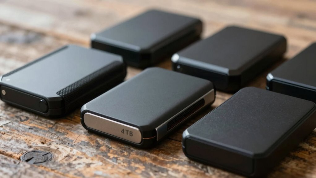 When selecting a rugged travel hard drive, I consider several key factors to guarantee it meets my needs. Things like durability standards, compatibility with my devices, storage capacity, speed, and security features all play a role in making the right choice. Let’s explore these points so you can find the best 4TB drive for your travels.