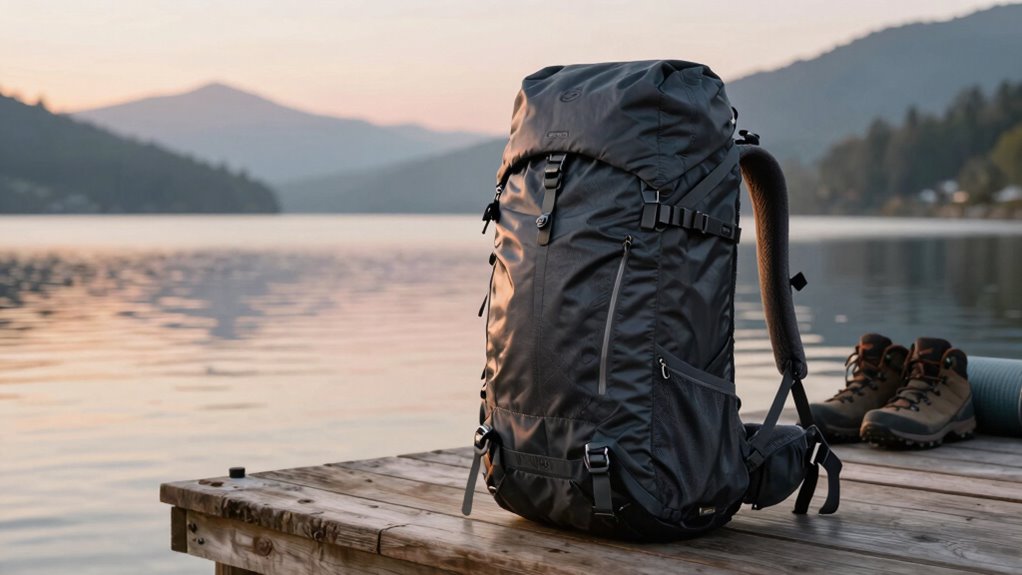 To effectively organize gear in a 50L backpack, I compartmentalize, prioritize, and pack systematically. I use packing cubes to separate clothing, electronics, and toiletries, making access easier and space more efficient. I roll clothes to save space and prevent wrinkles, and I keep frequently used items near the top or in external pockets for quick access. This method keeps everything tidy, accessible, and maximizes my pack’s capacity.