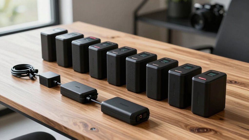 When choosing portable V-mount batteries, I look for essential safety features like overcharge and over-discharge protection, which prevent damage and ensure longevity. Short-circuit prevention is also critical, keeping both my gear and myself safe. Temperature regulation is a must, especially during long shoots or in varying climates. These features give me peace of mind, letting me focus on capturing great footage without worrying about battery safety.